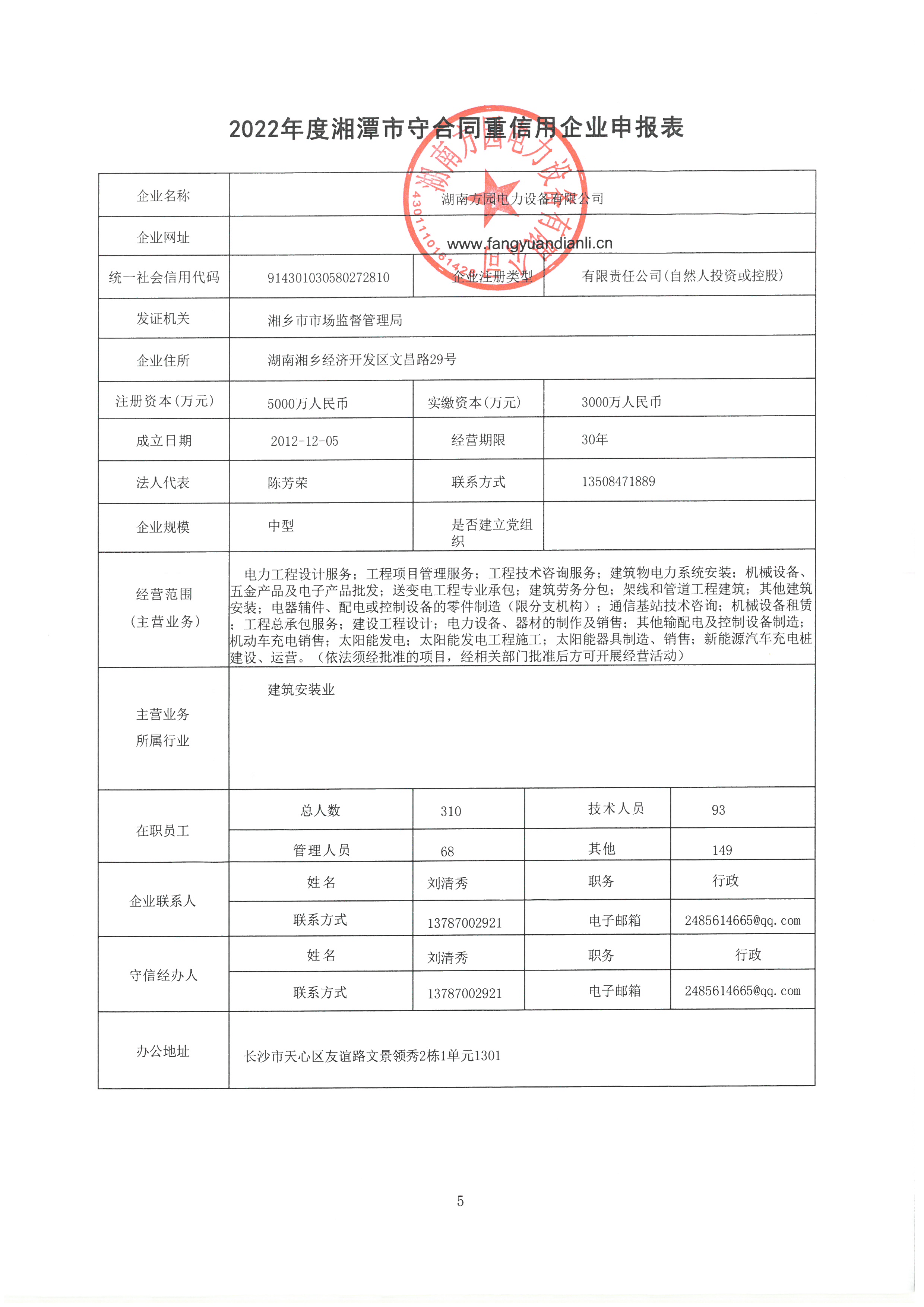 本企業根據《湘潭市守合同重信用企業申報規定》等編制 2022 年度企業信用報告書,并保證本報告書內容真實、準確、完整。
