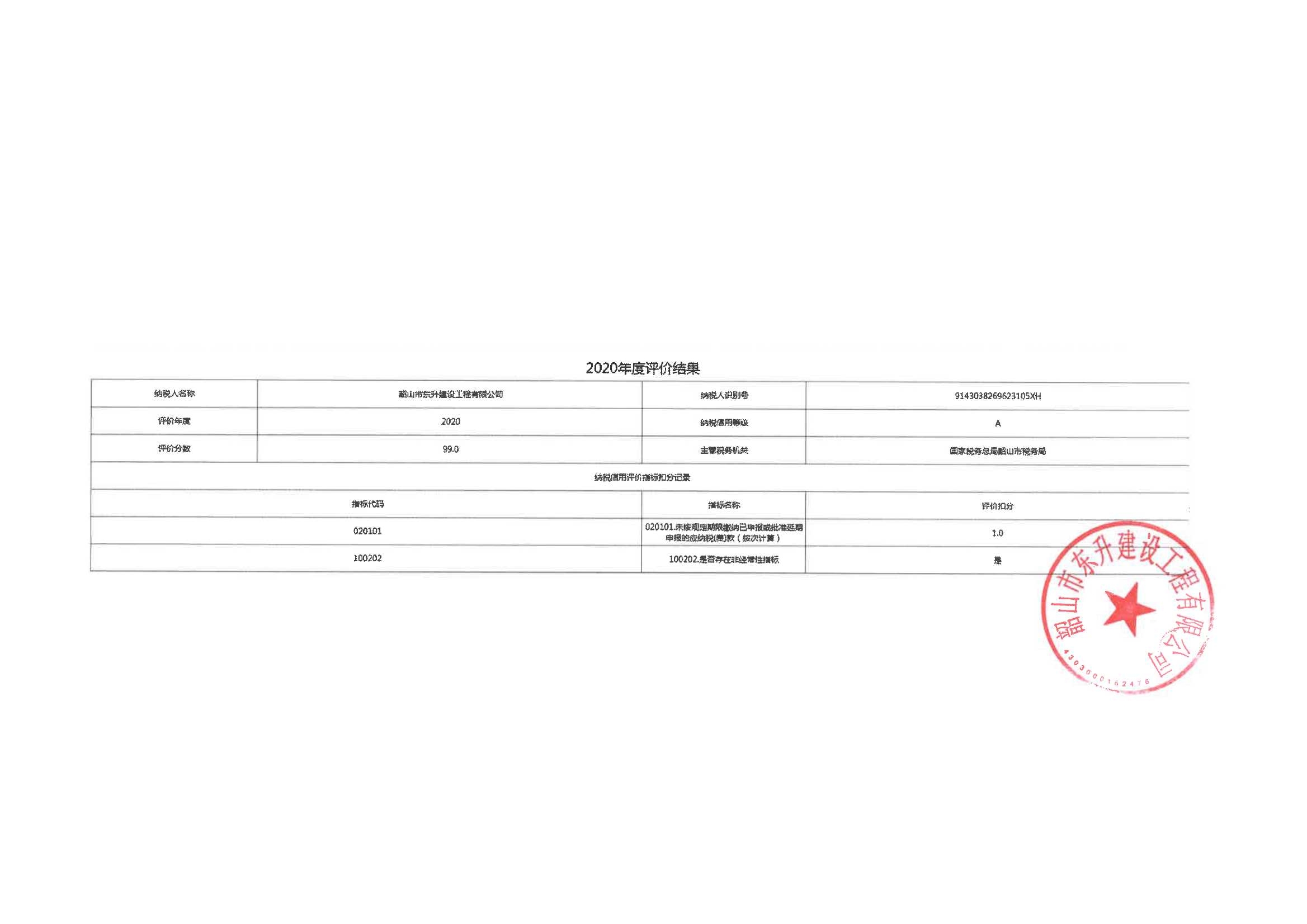 企業納稅信用等級報告: